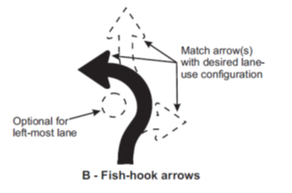 - A intersection lane control sign with fish-hook arrows is used on the traffic circle (see Figure 3.7F.1).
